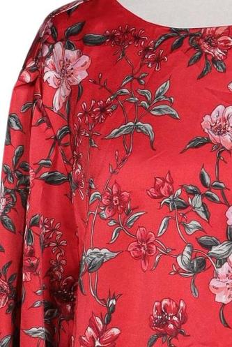 | Details | Satin, Langarm, Rundhals, verschlusslos, Floral |