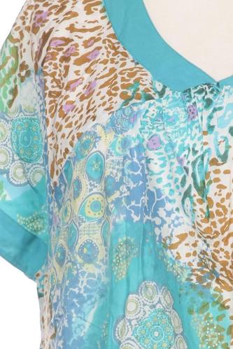 | Details | Jersey, Kurzarm, V-Ausschnitt, verschlusslos, Floral, Leopard |