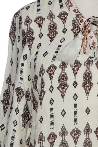 | Details | Fransen, Schnürung, Chiffon, Dreiviertelarm, V-Ausschnitt, verschlusslos, Ethno |