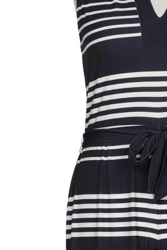 | Details | Jersey, ärmellos, Bindegürtel, V-Ausschnitt, Reißverschluss/Knöpfe hinten, Streifen |