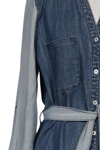 | Details | Jeans, Langarm, Bindegürtel, V-Ausschnitt, Front Knopfleiste, Einfarbig |
