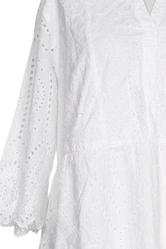 | Details | Spitze, Lochstickerei, Dreiviertelarm, V-Ausschnitt |