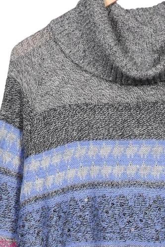 | Details | Grobstrick, Langarm, Rollkragen, Streifen |