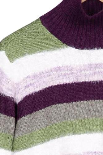 | Details | Grobstrick, Langarm, Rollkragen, Streifen |