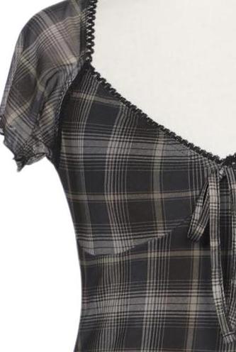 | Details | Rüschen, Kurzarm, V-Ausschnitt, Kariert |