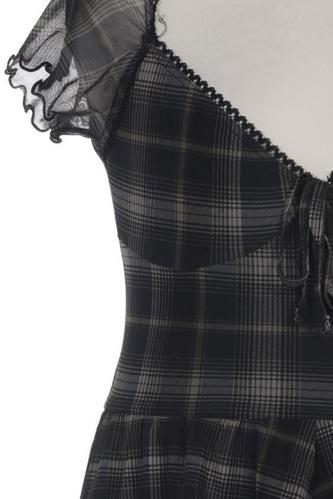 | Details | Rüschen, Tüll, Kurzarm, V-Ausschnitt, Kariert |