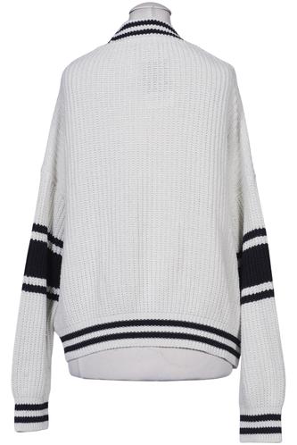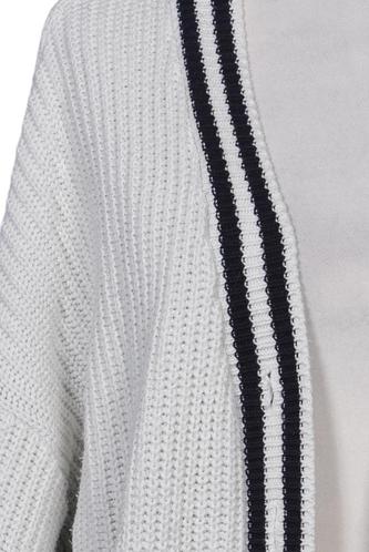 | Details | Grobstrick, Langarm, Front Knopfleiste, Markenlogo, Streifen |