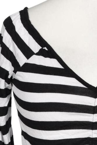 | Details | Jersey, Dreiviertelarm, V-Ausschnitt, Streifen |