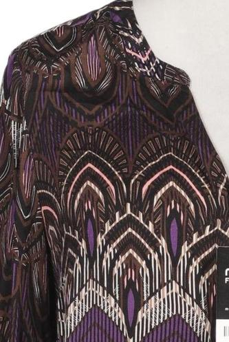 | Details | Satin, Dreiviertelarm, V-Ausschnitt, verschlusslos, Motivprint |