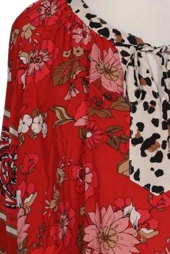 | Details | Jersey, Langarm, V-Ausschnitt, verschlusslos, Floral, Leopard |