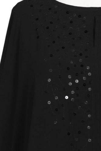 | Details | Pailletten, Chiffon, Dreiviertelarm, Rundhals, verschlusslos, Einfarbig |