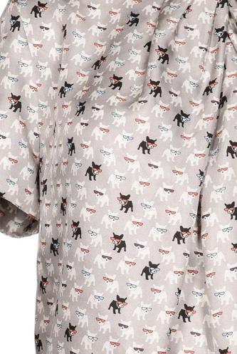 | Details | Satin, Kurzarm, Rundhals, verschlusslos, Motivprint |