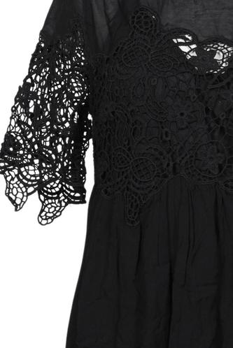 | Details | Spitze, Lochstickerei, Kurzarm, Rundhals |