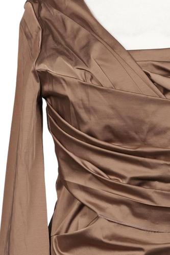 | Details | Satin, Plissee, Dreiviertelarm, V-Ausschnitt, Reißverschluss/Knöpfe hinten, Einfarbig |