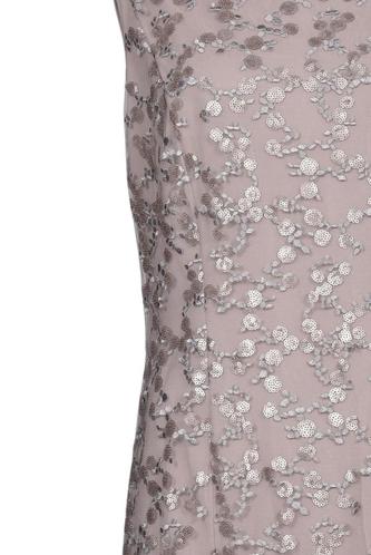 | Details | Spitze, metallic, ärmellos, Rundhals, Reißverschluss/Knöpfe hinten, Floral |