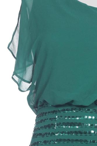 | Details | Pailletten, Chiffon, Kurzarm, V-Ausschnitt, Reißverschluss/Knöpfe hinten, Einfarbig |