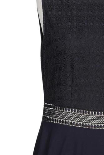 | Details | Spitze, Lochstickerei, ärmellos, Bindegürtel, V-Ausschnitt, Reißverschluss/Knöpfe hinten, Einfarbig |