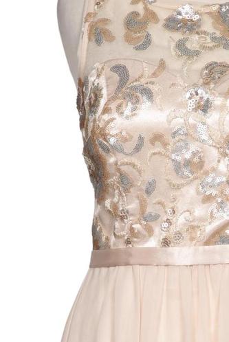 | Details | Pailletten, Tüll, metallic, ärmellos, Bindegürtel, Rundhals, Reißverschluss/Knöpfe hinten, Floral |