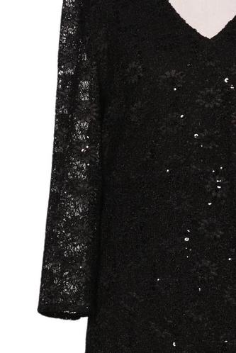 | Details | Pailletten, Spitze, Dreiviertelarm, V-Ausschnitt, Reißverschluss/Knöpfe hinten, Einfarbig |