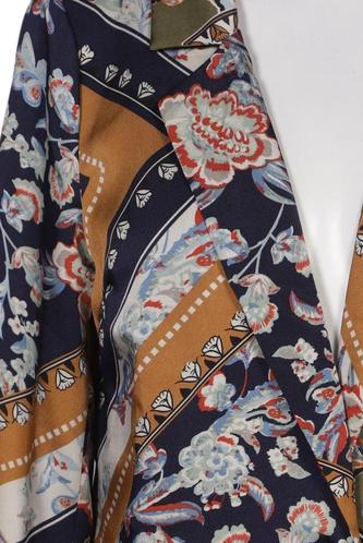| Details | Satin, Langarm, V-Ausschnitt, Front Knopfleiste, Floral |