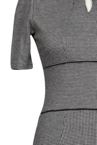 | Details | Jersey, Kurzarm, V-Ausschnitt, Reißverschluss/Knöpfe hinten, Kariert |