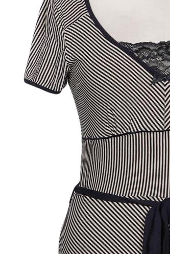 | Details | Jersey, Spitze, Kurzarm, Bindegürtel, V-Ausschnitt, Streifen |