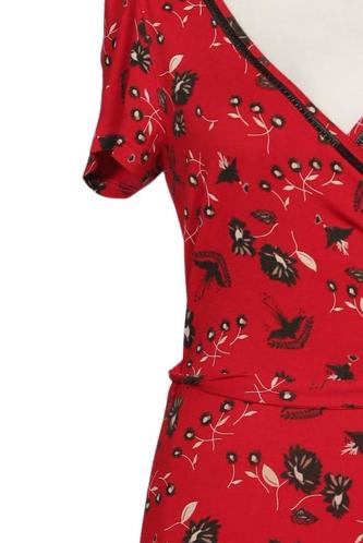| Details | Jersey, Kurzarm, Bindegürtel, Wickeloptik, V-Ausschnitt, Floral |