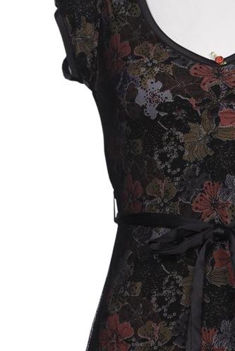 | Details | Tüll, Kurzarm, Bindegürtel, V-Ausschnitt, Floral |