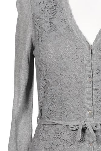 | Details | Spitze, Grobstrick, Langarm, Bindegürtel, Front Knopfleiste, Einfarbig |