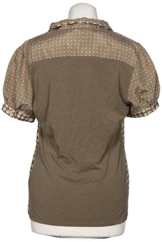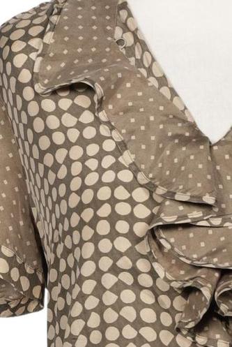 | Details | Jersey, Rüschen, Kurzarm, V-Ausschnitt, verschlusslos, Punkte |
