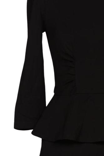 | Details | Jersey, Rüschen, Dreiviertelarm, Rundhals, Reißverschluss/Knöpfe hinten, Einfarbig |