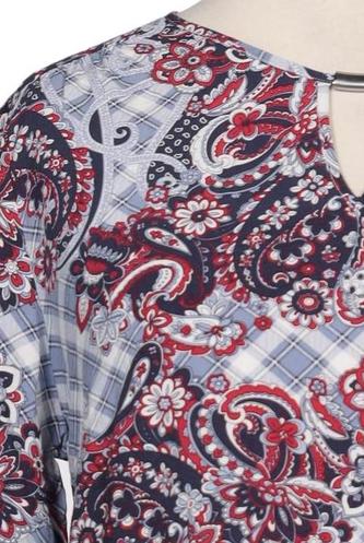 | Details | Chiffon, Langarm, V-Ausschnitt, verschlusslos, Paisley |