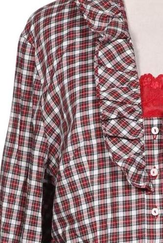 | Details | Rüschen, Langarm, Front Knopfleiste, Kariert |