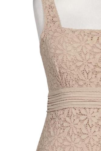 | Details | Spitze, ärmellos, Bindegürtel, Rundhals, Reißverschluss/Knöpfe hinten, Floral |