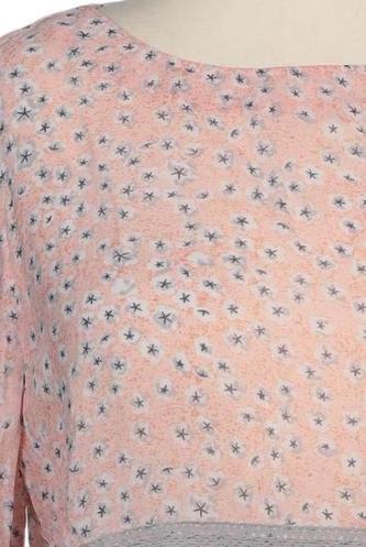 | Details | Chiffon, Dreiviertelarm, Rundhals, verschlusslos, Floral |
