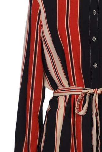 | Details | Langarm, Bindegürtel, Rundhals, Front Knopfleiste, Streifen |
