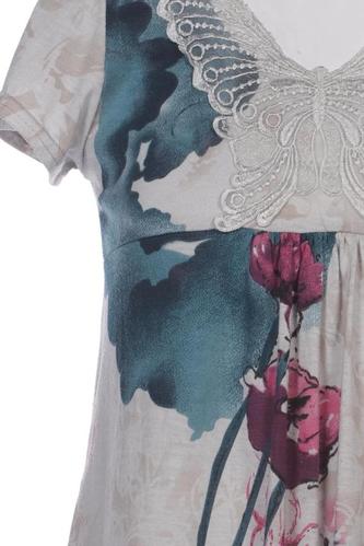 | Details | Jersey, Spitze, Kurzarm, V-Ausschnitt, Floral |