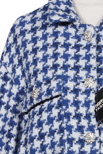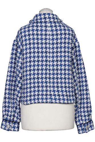 | Details | Langarm, Rundhals, Front Knopfleiste, Hahnentritt |