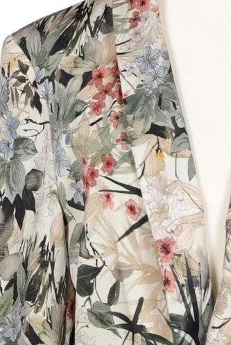 | Details | Satin, Langarm, Bindegürtel, Wickeloptik, V-Ausschnitt, Floral |