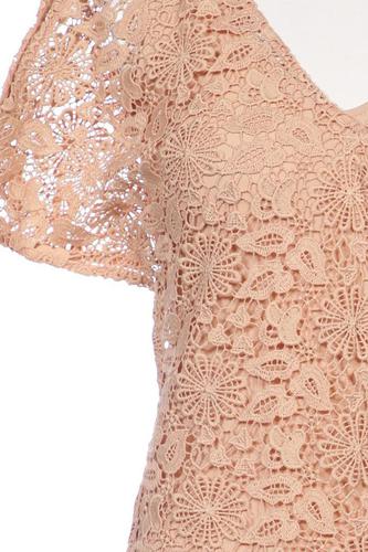 | Details | Pailletten, Spitze, Kurzarm, V-Ausschnitt, Reißverschluss/Knöpfe hinten |