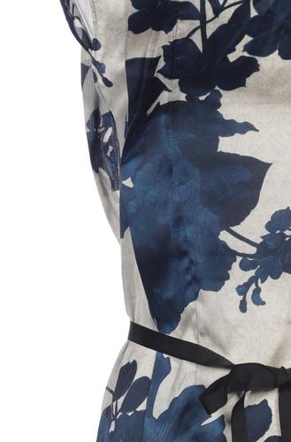 | Details | Satin, Cutouts, ärmellos, Bindegürtel, Rundhals, Floral |