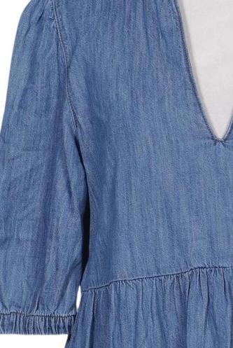 | Details | Jeans, Rüschen, Kurzarm, V-Ausschnitt, Einfarbig |