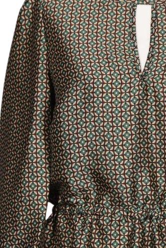 | Details | Satin, Dreiviertelarm, V-Ausschnitt, Gummizug/Tunnelzug, Motivprint |