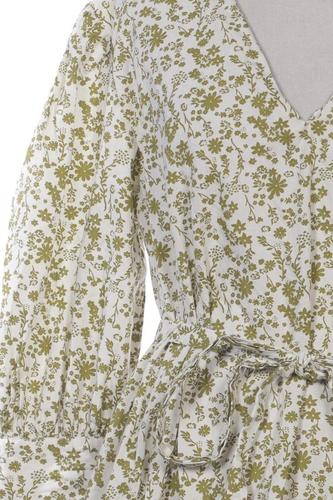| Details | Dreiviertelarm, Bindegürtel, V-Ausschnitt, Floral |