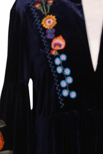 | Details | Stickerei, Samt, Langarm, V-Ausschnitt, Floral |