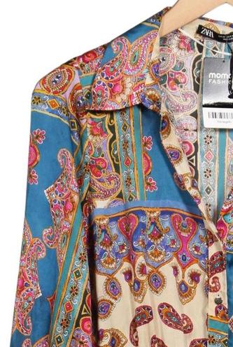 | Details | Satin, Langarm, V-Ausschnitt, Front Knopfleiste, Ethno, Floral |