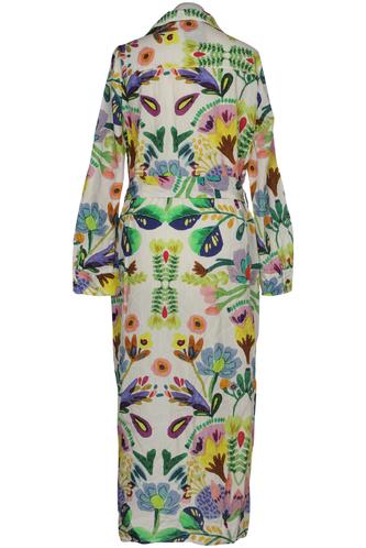 | Details | Langarm, Bindegürtel, V-Ausschnitt, Front Knopfleiste, Floral |