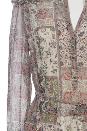 | Details | Chiffon, Langarm, Bindegürtel, V-Ausschnitt, Floral |