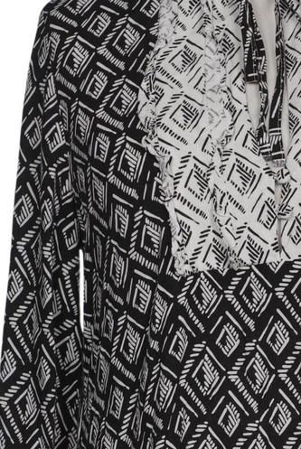 | Details | Rüschen, Langarm, V-Ausschnitt, Rauten |