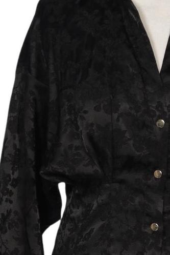 | Details | Satin, Langarm, Bindegürtel, V-Ausschnitt, Front Knopfleiste, Floral |
